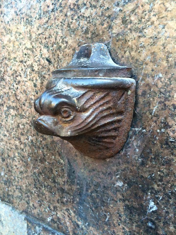 - Rear of the City Museum building New St Square/Market Street corner. This fountain is still partially present, with brown granite and a heraldic dolphin spout, though there’s no bowl now. Provided by the Lancaster Corporation with the funding given by an anonymous donor in 1859 along with three others, it used the newly piped water from the Wyresdale fells.