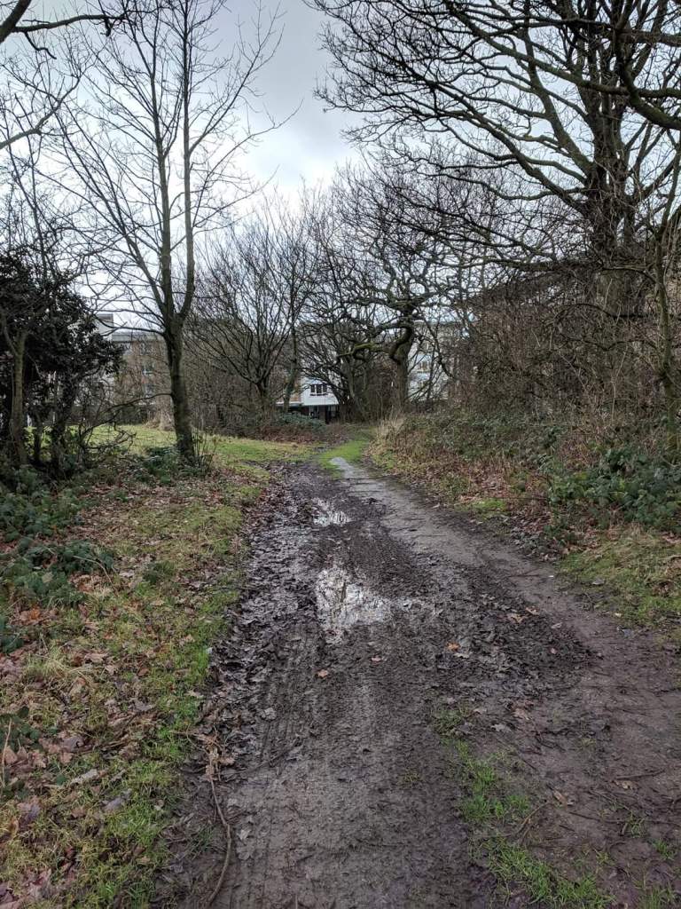 which was bordered by a stone wall. The route cut across today’s Highfield recreational field