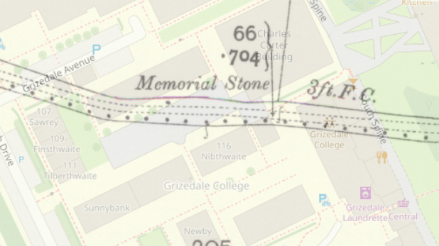 After the murder, by public subsciption, a benefit fund was raised for Elizabeth’s mother Mary and a memorial stone was made for Elizabeth (the stonemason initially refused to accept payment for it) and in late March of that year it was placed on the spot where Elizabeth’s body was found on Green Lane. Mawkish visitors quickly stripped the surrounding trees and bushes of twigs and branches as souvenirs. The lane itself became devoid of greenery due to the literal sea of human traffic to the site, though a spade mark was made where Elizabeth’s head had rested and this spot remained untrodden. This site of the memorial plaque was marked on OS maps of the time and could still be visited until the 1960s when Lancaster University began developing the land all around Bailrigg and Hazelrigg. Today the memorial site is no longer a quiet bylane but is the heart of the campus of the University. Grizedale College and the area immediately fronting Grizedale bar is today the location of the memorial stone where it can still be seen on the side of a large stone planter. The chapel lane, as it was then called, leading off the A6 up past Lancaster House Hotel and into the University campus is now called Green Lane in its entirety. Behind Grizedale College, a final section of the original tree-lined Green Lane remains alongside the George Fox Building. It is eerily incongruous amongst all the other contemporary university buildings.