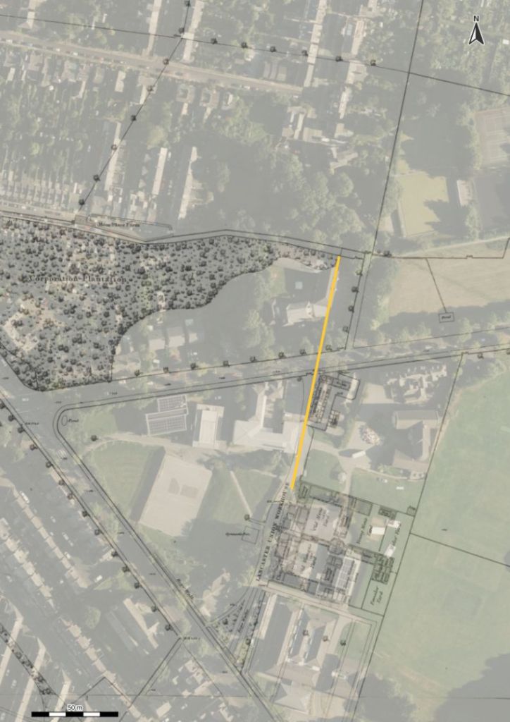workhouse over a satellite map of LRGS we can project a line outwards from the ‘second