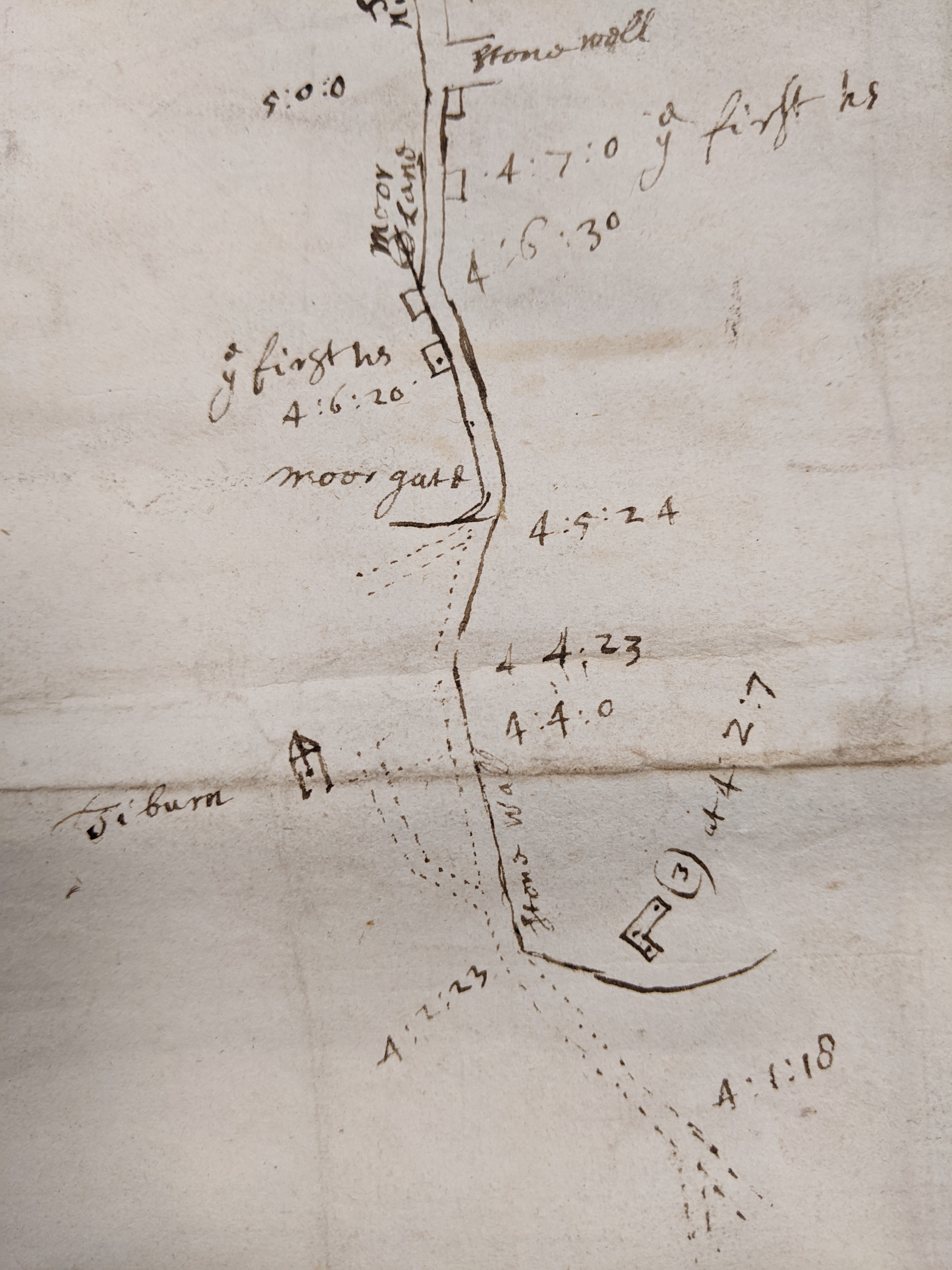 today. After passing by ‘ye first houses’, roughly where the canal and Moor Lane intersect,